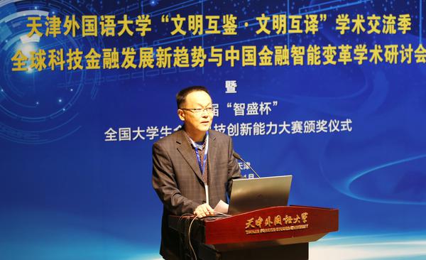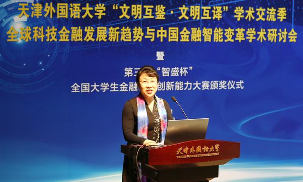 2020年11月8日,第三屆“智盛杯”全國大學生金融科技創(chuàng)新能力大賽頒獎儀式暨天津外國語大學“文明互鑒·文明互譯”學術(shù)交流季——“全球科技金融發(fā)展新趨勢與中國金融智能變革學術(shù)研討會”在天津外國語大學馬場道校區(qū)隆重舉行。此次頒獎儀式采取線上線下融合方式舉辦,未能到達現(xiàn)場的參會人員通過騰訊會議直播參加。