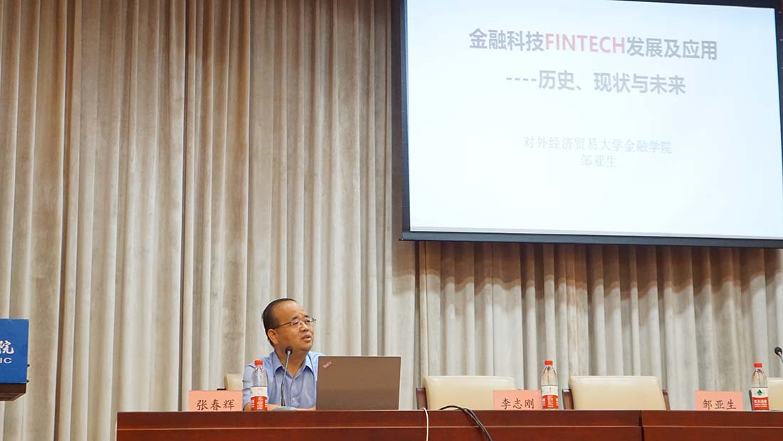 開幕式結(jié)束后,先由對外經(jīng)濟貿(mào)易大學(xué)金融學(xué)院院長鄒亞生圍繞"ABCD等新技術(shù)在金融行業(yè)發(fā)展及應(yīng)用現(xiàn)狀”這一主題;分析了人工智能、區(qū)塊鏈、云計算和大數(shù)據(jù)這四大領(lǐng)域在金融行業(yè)的發(fā)展前景與應(yīng)用情況。