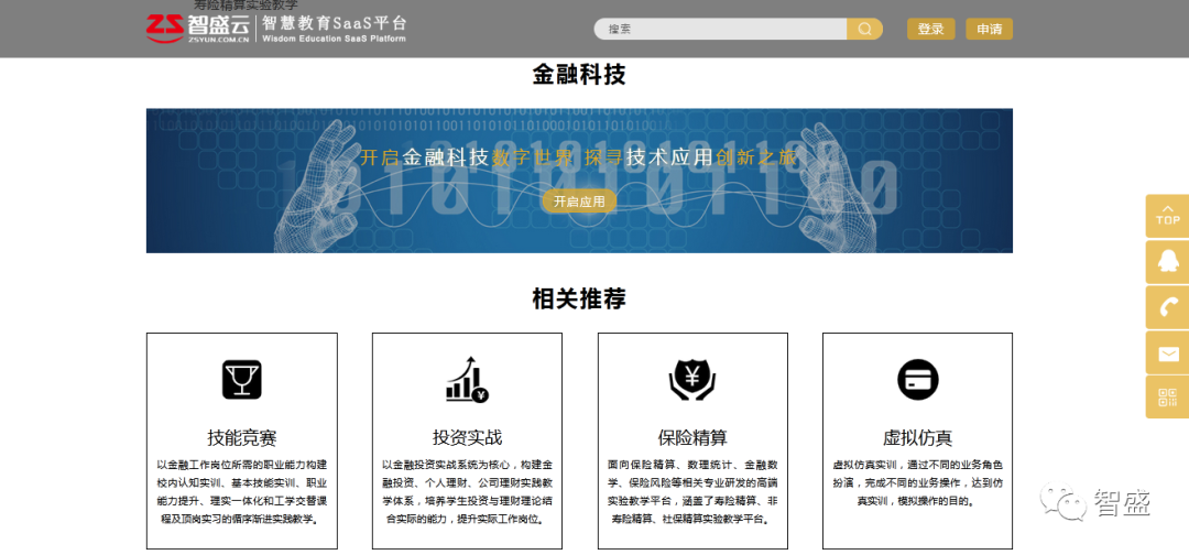 智盛云智慧教育SaaS平臺(簡稱:智盛云)是專門為全國高校金融教育提供全面,專業(yè),實用,貼心的產(chǎn)品和服務的金融實驗教學云平臺,與金融類專業(yè)實際教學相切合,集“教、學、做、考、賽”于一體的在線服務云平臺。
